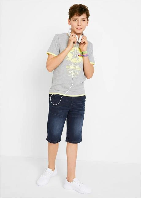 Bermuda avec taille élastiquée et cordon. Pantalons en grandes tailles : ces pantalons sont proposés en 3 ajustements différents : “normal”, “large” (avec un tour de hanches de +6 cm) ou “extra large” (avec un tour de hanches de +12 cm par rapport aux tailles normales). Le tour de taille et les jambes sont également de coupe plus large pour un tombé confortable. Empiècement taille réglable jusqu’au 176 pour tous les modèles.