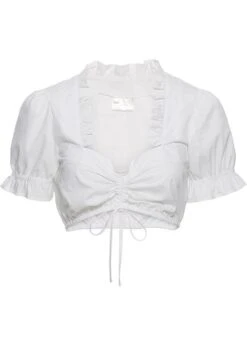 Blouse bavaroise traditionnelle “Dirndl” premium ornée de jolis ruchés sur le décolleté et sur les manches bouffantes, matière facile d’entretien, lien de serrage pour moduler le décolleté.