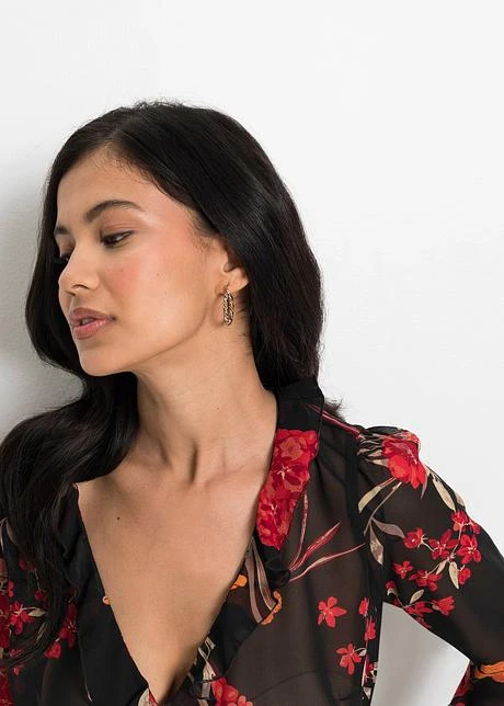 Blouse en chiffon mode à la ligne flatteuse pour la silhouette. Long. env. 62 cm.