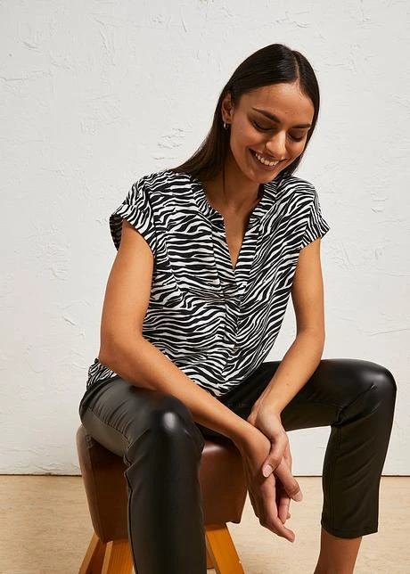 Blouse moderne de BODYFLIRT. Blouse dotée d’un col Henley. Long. env. 64 cm.