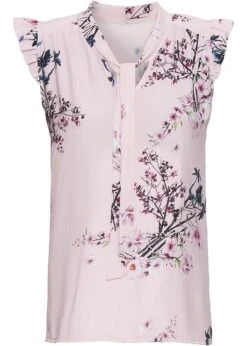 Ce joli top-blouse de la marque Bodyflirt est tout particulièrement ravissant avec ses deux différents imprimés, ses volants aux manches et sa lavallière au décolleté. Long. env. 62 cm.