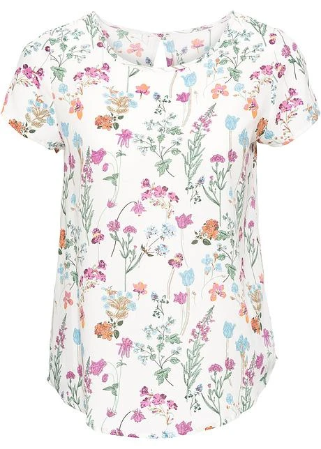 Blouse flatteuse pour la silhouette qui se ferme par un petit bouton dans la nuque. Long. env. 68 cm.