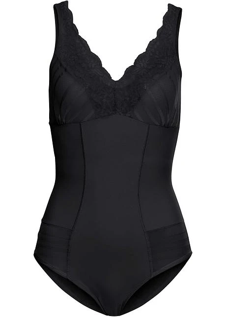 Ce body sculptant de la marque bpc Nice Size gaine le ventre et la taille pour dessiner une jolie silhouette féminine. Dentelle florale avec doublure de couleur contrastante au niveau de la poitrine et empiècements en dentelle motif rayé à l’échancrure des jambes.
