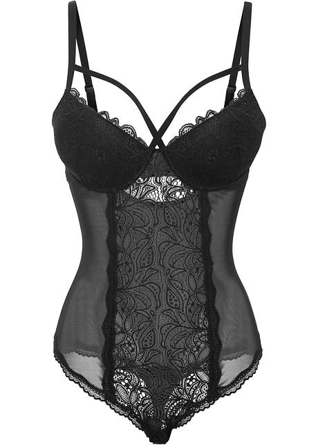 Joli body en mesh agrĂ©mentĂ© d’une dentelle sublime. Les Ă©lastiques fins soulignent le dĂ©colletĂ© et ajoutent une touche trĂšs moderne et tendance.