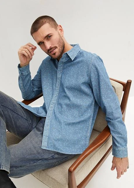 Chemise En Jean Imprimée, Manches Longues