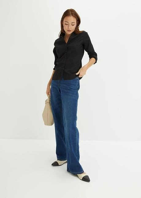 La teneur en élasthanne procure une agréable sensation de confort. Joli décolleté en V et deux boutons en bas de manches. Long. env. 62 cm.