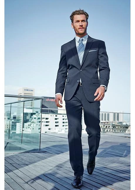 Veste de costume classique à fermeture 2 boutons, long. dos env. 77 cm. Pantalon assorti avec empiÚcement taille extensible pour un ajustement optimal, plis repassés.