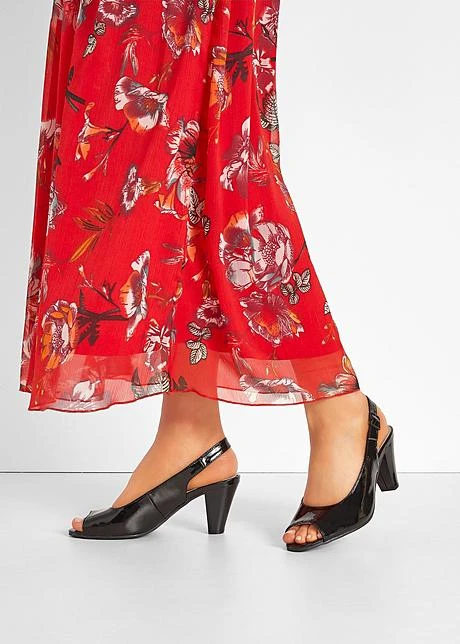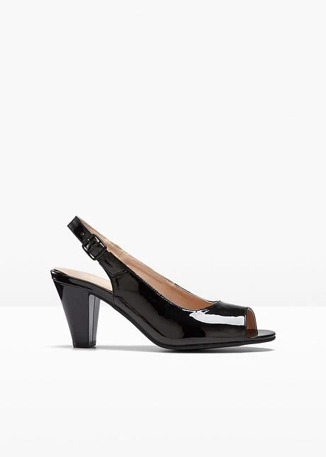 Ces escarpins à talons ouverts intemporels séduisent par leurs jolis détails et se combinent facilement.