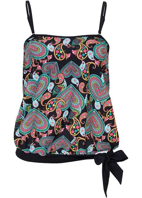 La coupe spéciale de ce haut de tankini oversize de bpc flatte la silhouette. Doté de bretelles réglables et amovibles, ce haut au tombé aérien peut se porter de différentes façons : avec des bretelles classiques, croisées dans le dos ou dos nu. Ce modèle est complété d’une doublure poitrine, de coques souples intégrées et d’une bande élastique sous poitrine qui procurent un bon maintien. Un large lien à nouer à la base sur le côté permet de fixer le top et apporte à la fois une touche originale.