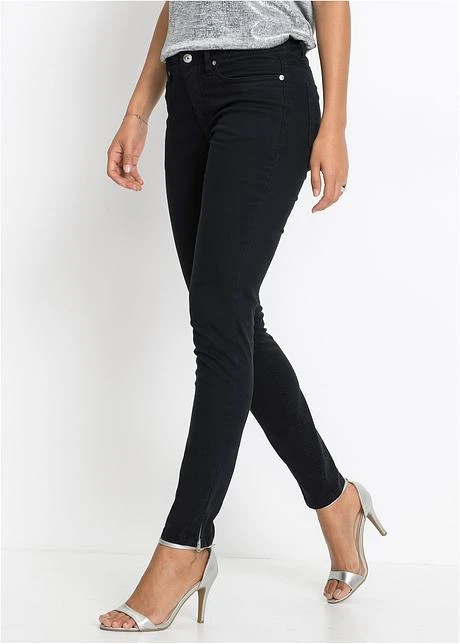 Pantalon extensible avec jambes étroites et petit zip à la base. Long. entrejambe env. 74,5 cm.
