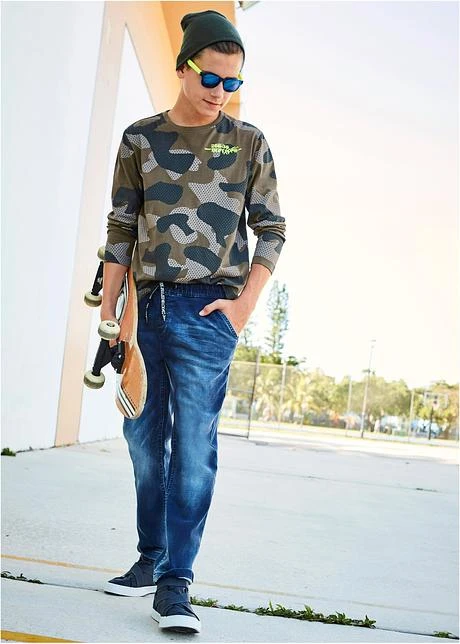 Pantalon sweat imitation jean. Coupe Regular Fit avec taille élastiquée et cordon de coloris contrastant. Nous proposons différents ajustements concernant notre gamme de pantalons en grandes tailles pour les enfants. Les pantalons ont un tour de hanches de +6 cm (large) ou +12 cm (extra large) par rapport aux tailles normales. Le tour de taille et les jambes sont également de coupe plus large pour un tombé confortable.