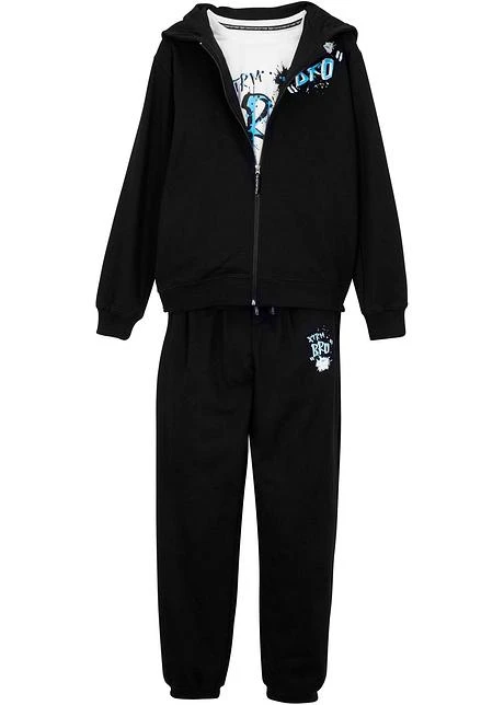 Ensemble cool comprenant un pantalon de jogging, un gilet sweat à capuche et un T-shirt à imprimé sur le devant. Ce jogging 3 pièces au style décontracté est un must pour les enfants cool !