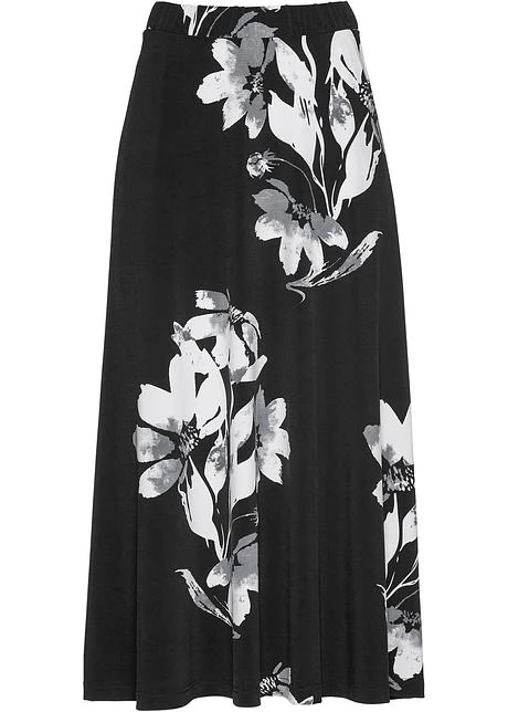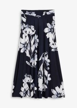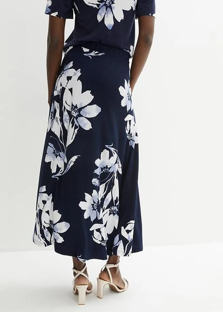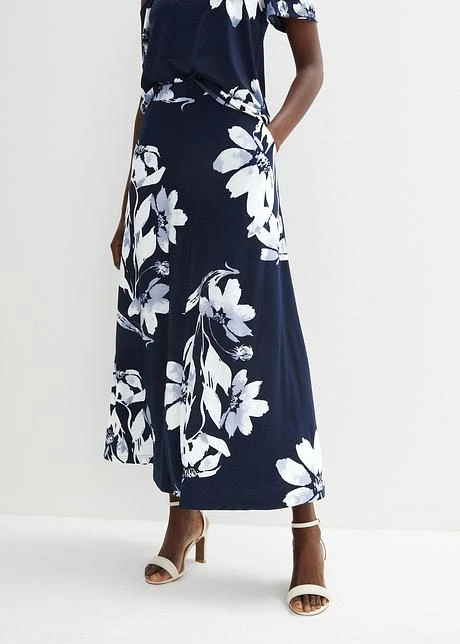 Jolie jupe à imprimé floral mode. Long. env. 90 cm (T.N.) et env. 84 cm (T.C.), lavage machine.