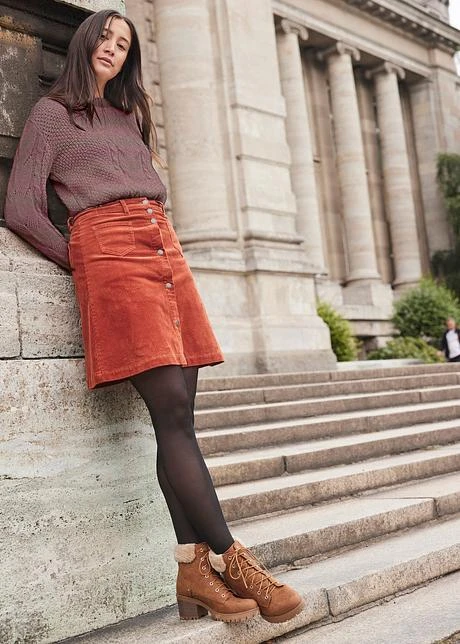 Jupe Velours Côtelé Avec Patte De Boutonnage