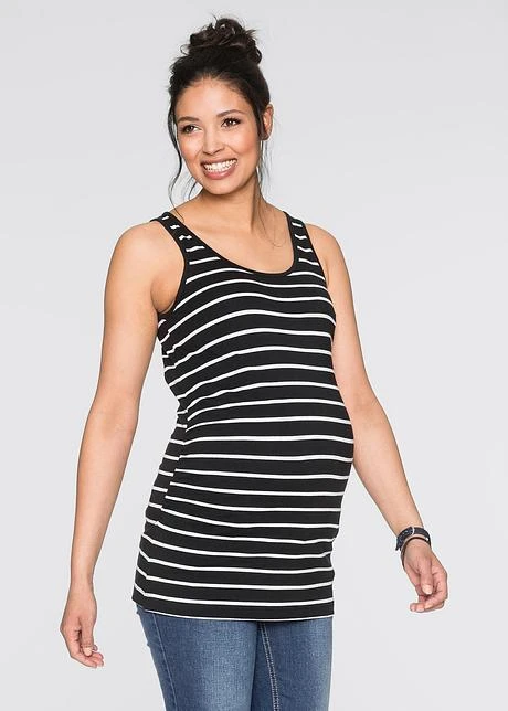 Un joli basique par lot de 2 (1x rayé et 1x uni). Ce débardeur pour femme enceinte est confectionné dans une matière élastique et coupé un peu plus long pour offrir un grand confort pendant la grossesse. Il s’adapte parfaitement à vos rondeurs au fil des mois et vous pourrez le porter tout au long de la grossesse.