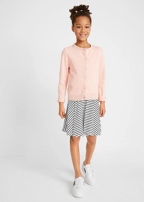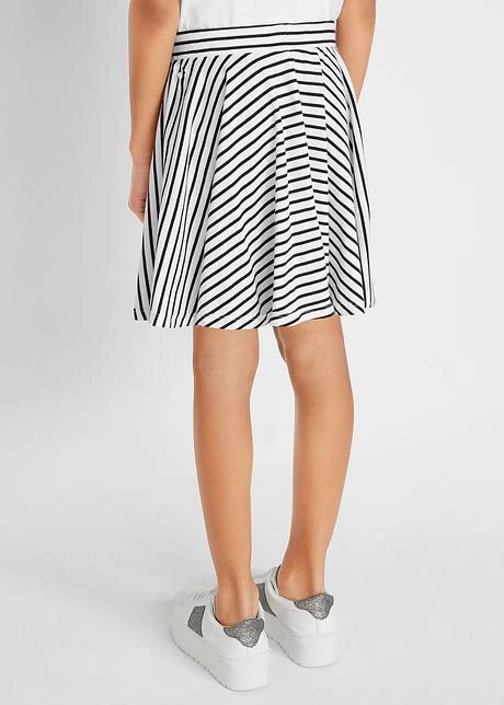Lot pratique de 2 jupes pour filles faciles à associer, un modèle rayé et un modèle uni. Forme légèrement évasée et dansante, taille extensible pratique pour l’enfiler.