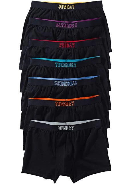 IdĂ©al pour toute la semaine, le lot bpc se compose de sept boxers en coton. AgrĂ©able Ă porter, ce sous-vĂȘtement dispose dâune bande Ă©lastiquĂ©e Ă la taille. Sâajustant parfaitement, il Ă©pouse la forme du corps et ne serre pas le ventre. Originale, sa taille est agrĂ©mentĂ©e dâune broderie colorĂ©e qui reprĂ©sente un jour de la semaine.Discret, le boxer se glisse sous nâimporte quel bas du dressing masculin. Il se porte avec un pantalon, un pantacourt ou un short.