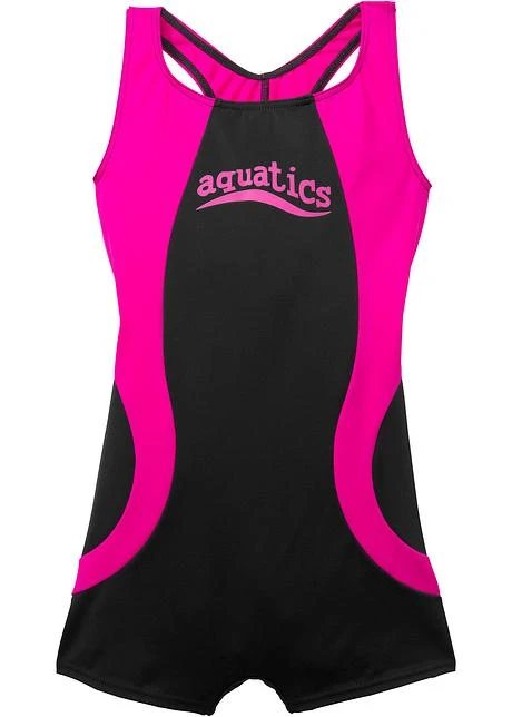 Avec ce joli maillot de bain de la marque bac, les filles ont une tenue stylée pour nager. Dos nageur et une découpe dos décontractée. Coupe shorty pour un look sportif. Modèle accrocheur avec des couleurs contrastantes et une inscription devant.