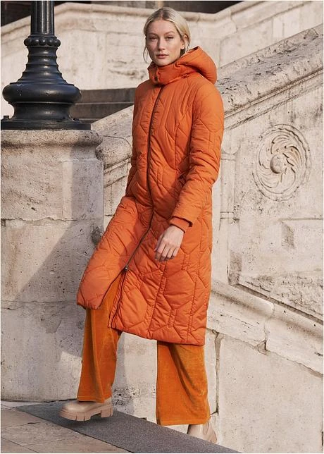 Manteau Long Matelassé Avec Surpiqûres Diamant