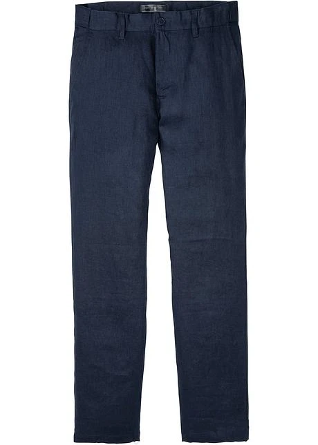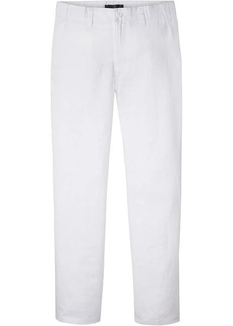 Pantalon Chino En Lin Avec Taille Confortable Regular Fit, Straight