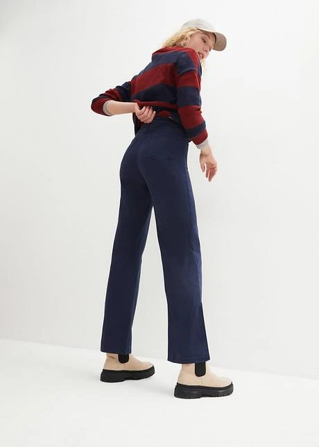 Pantalon En Coton Extensible, Taille Haute, Jambes Larges