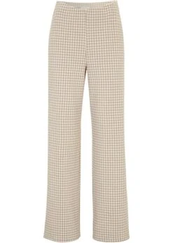 Pantalon Extensible à Motif Pied-de-poule, Wide Leg