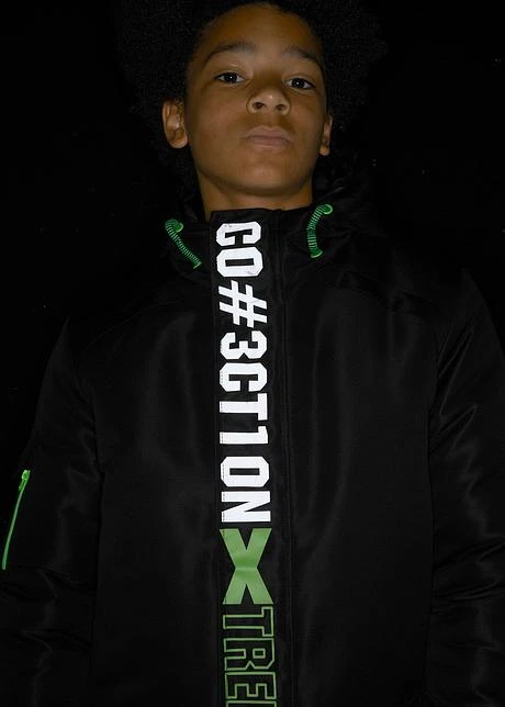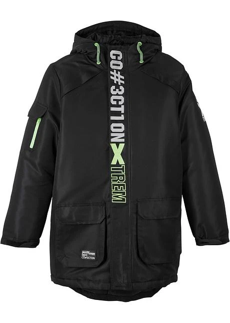Parka d’hiver avec des détails fonctionnels et un motif mode. Fermeture zippée devant. Poches latérales. Avec capuche et poignets autoagrippants réglables pour une meilleure protection contre le froid. Grande inscription devant.