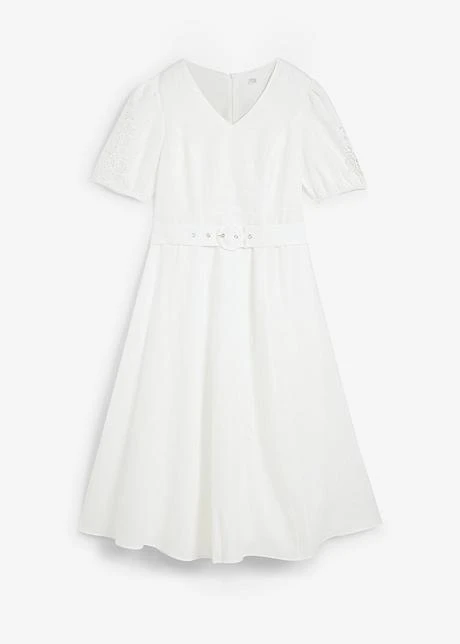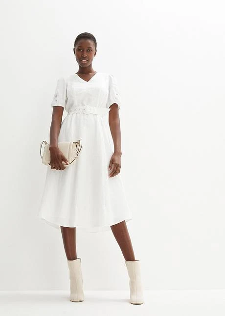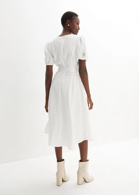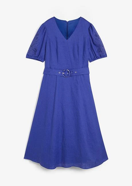 PREMIUM Robe 100 % Lin Avec Broderies Et Ceinture