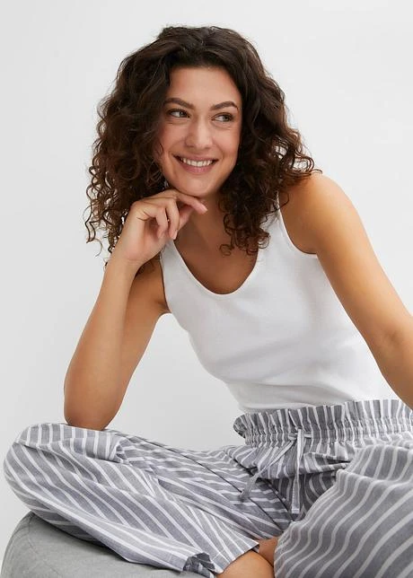 Pyjama Composé D’un Débardeur Court Côtelé Et D’un Pantalon Tissé En Chambray