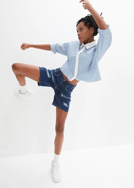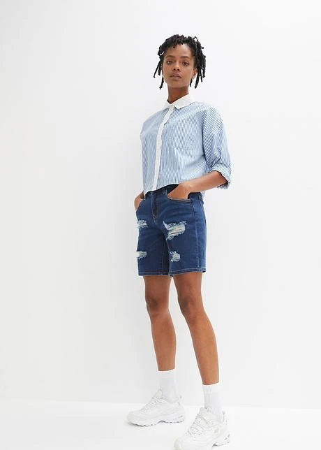 Coupe décontractée avec effets déchirés. Long. entrejambe retroussé env. 12,5 cm.