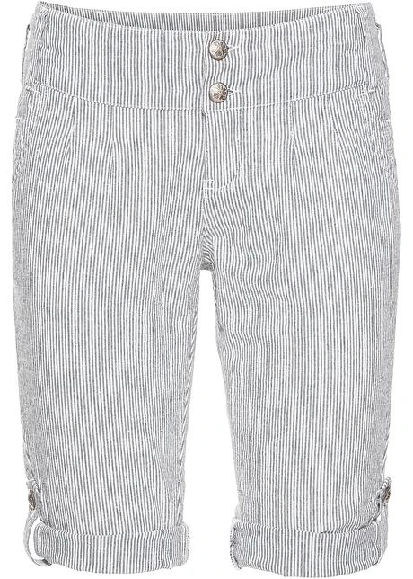 Avec empiècement taille large. Jambes longueur 3/4 retroussables. Long. entrejambe env. 36 cm.