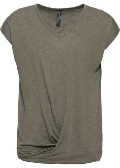 Encolure en V, manches légèrement chauve-souris et effet noué à la base. Long. env. 64 cm.
