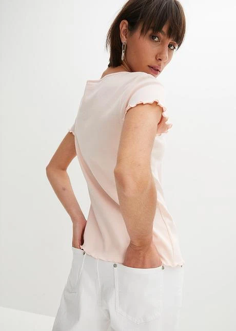 Rainbow T-shirt Côtelé à Boutons Décoratifs
