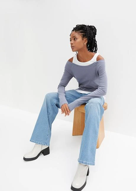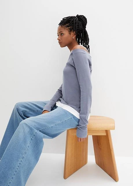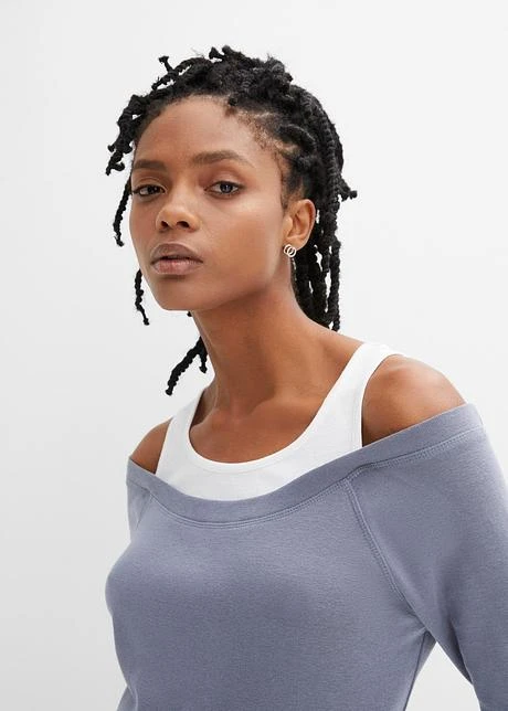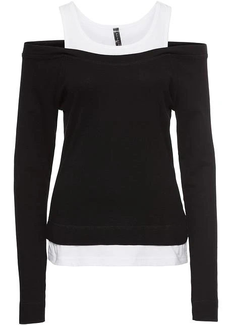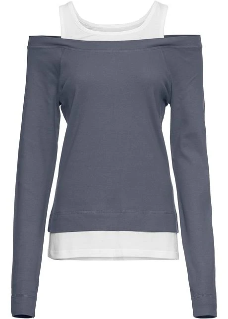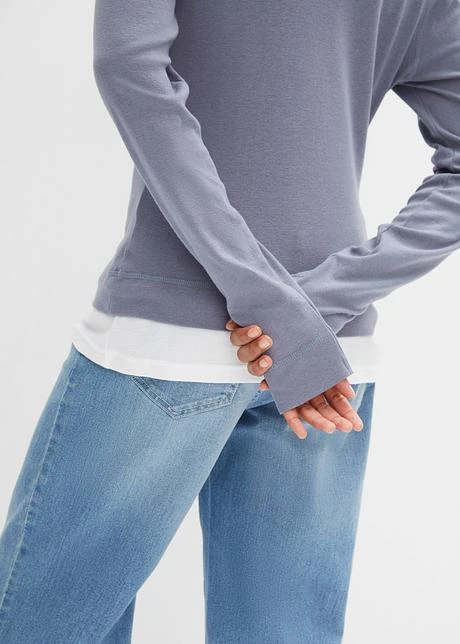 Avec encolure ronde et emmanchures passepoilées, manches raglan longues avec manchettes. Jolie combinaison de couleurs. Long. env. 60 cm.