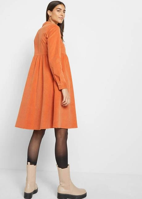 Robe Coupe Trapèze En Velours Côtelé Avec Poches, Longueur Genou