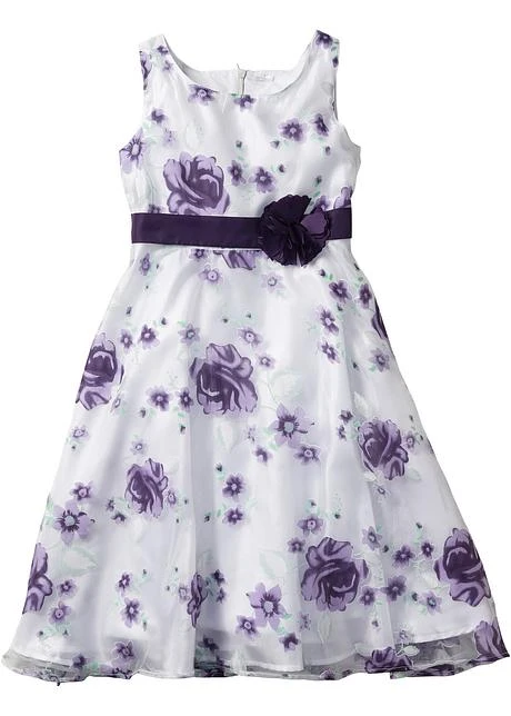 Robe de fête avec un bel imprimé all-over, ruban en satin à la taille avec application fleur. Fermeture zippée au dos pour un enfilage pratique.