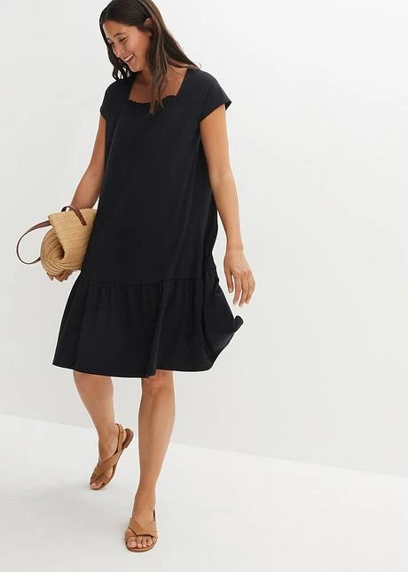 Robe En Jersey Coton Avec Détail Décolleté Et Manches Papillon, Longueur Genou