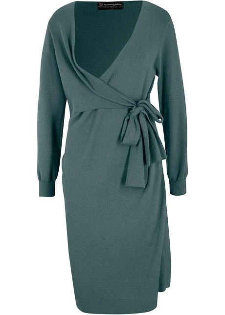 Jolie robe style portefeuille pour la période de la grossesse et après la naissance. Le lien à nouer pratique facilite l’allaitement.