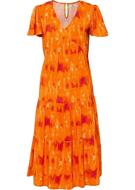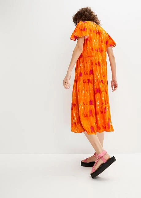Robe Midi Avec Manches Papillon, Volants Et Poches