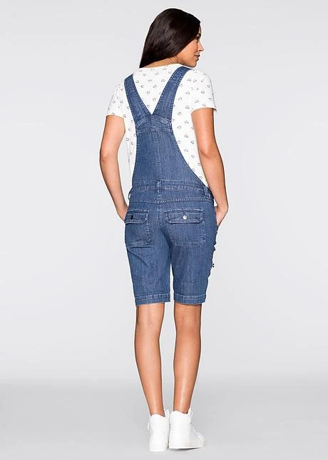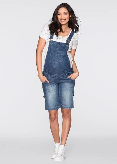 Salopette-short estivale retroussable conçue pour la grossesse. Elle est dotĂ©e d’empiĂšcements Ă©lastiques au niveau des hanches et sur le devant de la salopette et peut ĂȘtre portĂ©e tous les mois de la grossesse. Bretelles rĂ©glables. Avec poches Ă rabat plaquĂ©es au dos avec bouton. Long. entrejambe env. 31 cm, lavable en machine.