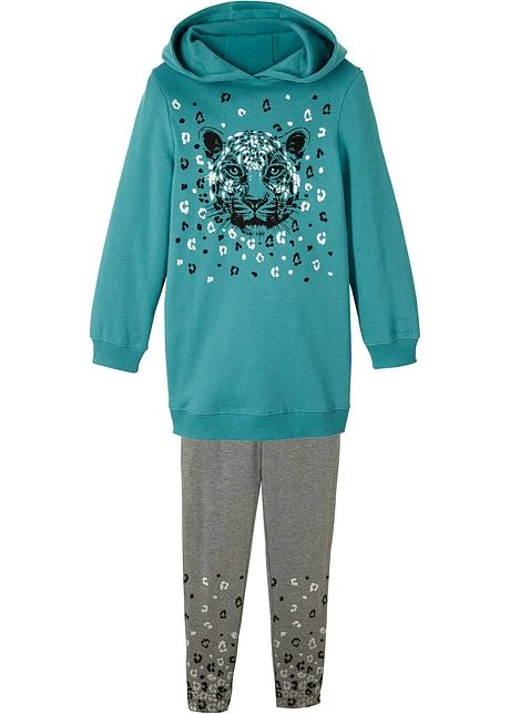 Ensemble deux pièces composé d’un sweat-shirt à capuche et d’un legging en coton douillet avec un imprimé cool.