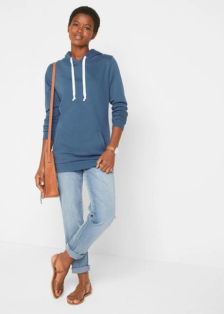 Sweat-shirt long à manches longues avec petit imprimé sur la poche, long. env. 76 cm, lavage machine.
