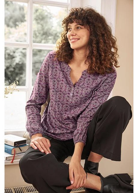 T-shirt Manches Longues Imprimé Avec Col Henley
