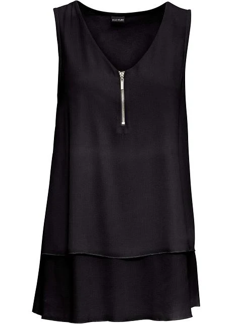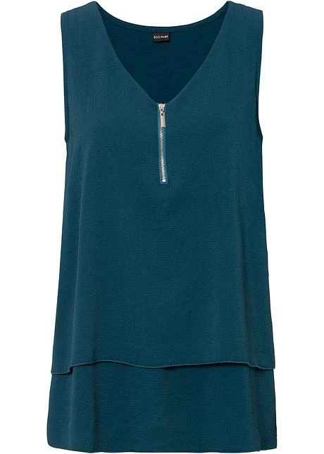 Le zip décoratif au décolleté en V apporte une touche de raffinement. Style double épaisseur ultra moderne. Long. env. 64 cm.