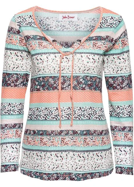 Tunique T-shirt imprimée avec encolure ronde soulignée d’une petite fente en V avec liens à nouer. Long. env. 70 cm, lavage machine.