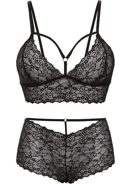 L’ensemble en dentelle élégante composé d’une brassière et d’un shorty ouvert vous prête une allure sexy pour votre partenaire. La dentelle douce épouse délicatement votre silhouette pour vous offrir un confort total. Le décolleté plongeant de la brassière met votre poitrine parfaitement en valeur et est souligné de petits détails coquins sur le devant et au dos.