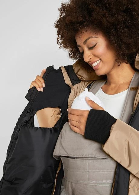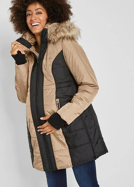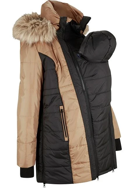 Cette veste de grossesse dotée de cordons coulissés réglables à la taille souligne votre ventre arrondi. Les zips sur le côté offrent un volume supplémentaire. Synthétique imitation fourrure à la capuche amovible par boutons.