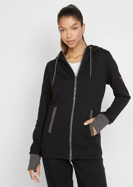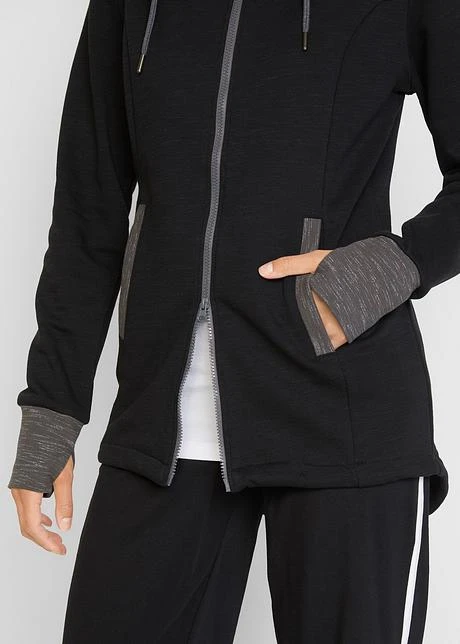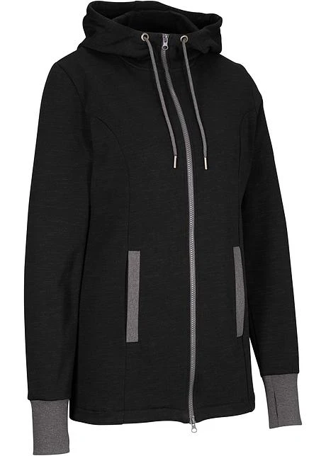 Veste sweat à capuche, détails contrastants, manches longues, mitaines, long. env. 82 cm, lavage machine.